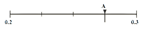 📖 REMINDER: Find A's value by counting equal intervals. Then convert each option to a decimal and check which lies between A and 0.3.